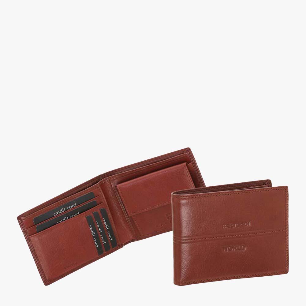 Δερμάτινο ανδρικό πορτοφόλι BARTUGGI με 5 θέσεις για κάρτες, 2 θέσεις για χαρτονομίσματα, τσέπη για κέρματα και 3 επιπλέον εσωτερικές θήκες για ταυτότητα, δίπλωμα ή φωτογραφία.