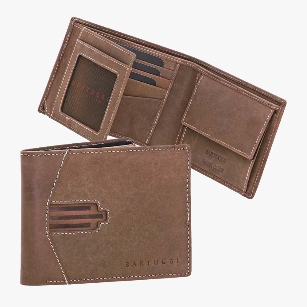 Δερμάτινο ανδρικό πορτοφόλι BARTUGGI με 6 θέσεις για κάρτες, 2 θέσεις για χαρτονομίσματα, τσέπη για κέρματα, θέσεις για ταυτότητα και για δίπλωμα και 2 επιπλέον θήκες.