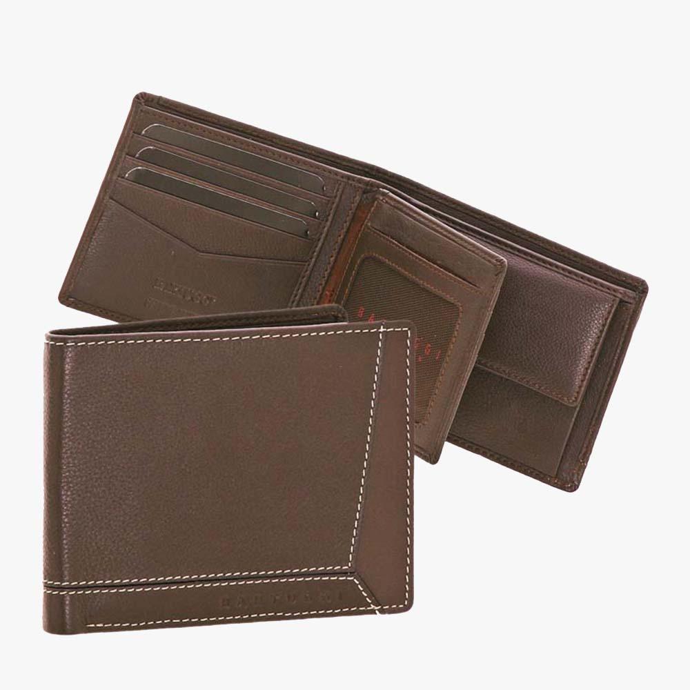 Δερμάτινο ανδρικό πορτοφόλι BARTUGGI με 9 θέσεις για κάρτες, 2 θέσεις για χαρτονομίσματα, τσέπη για κέρματα, θέσεις για ταυτότητα και για δίπλωμα και 3 επιπλέον θήκες.
