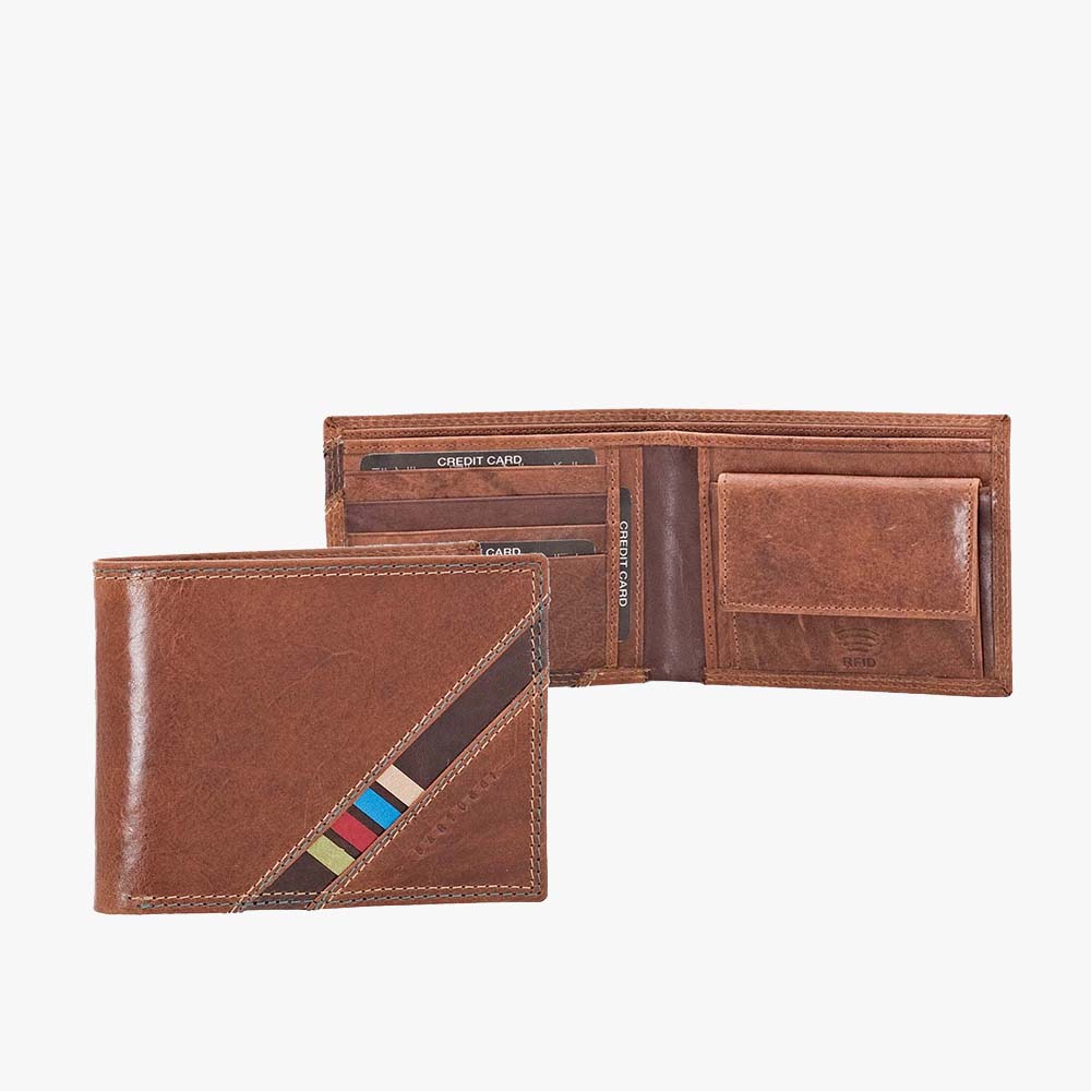Δερμάτινο, πορτοφόλι BARTUGGI με 4 θέσεις για κάρτες, 2 θέσεις για χαρτονομίσματα, 3 επιπλέον θέσεις για ταυτότητα, δίπλωμα, κλπ, τσέπη για κέρματα και RFID αντικλεπτική προστασία.