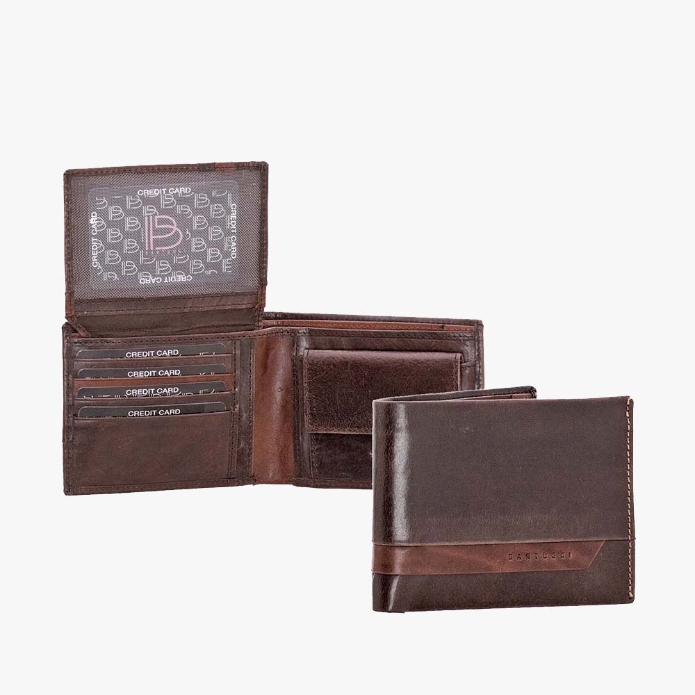 Δερμάτινο, πορτοφόλι BARTUGGI με 9 θέσεις για κάρτες, 3 θέσεις για χαρτονομίσματα, εκ των οποίων η μια ασφαλίζει με φερμουάρ, 5 επιπλέον θέσεις για φωτογραφίες ή επιπλέον κάρτες, τσέπη για κέρματα και RFID αντικλεπτική προστασία.