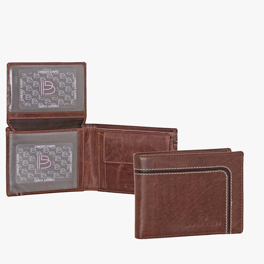Δερμάτινο ανδρικό πορτοφόλι BARTUGGI με 4 θέσεις για κάρτες, 2 θέσεις για χαρτονομίσματα, τσέπη για κέρματα με καπάκι και 3 επιπλέον εσωτερικές θήκες για ταυτότητα, δίπλωμα ή φωτογραφία.