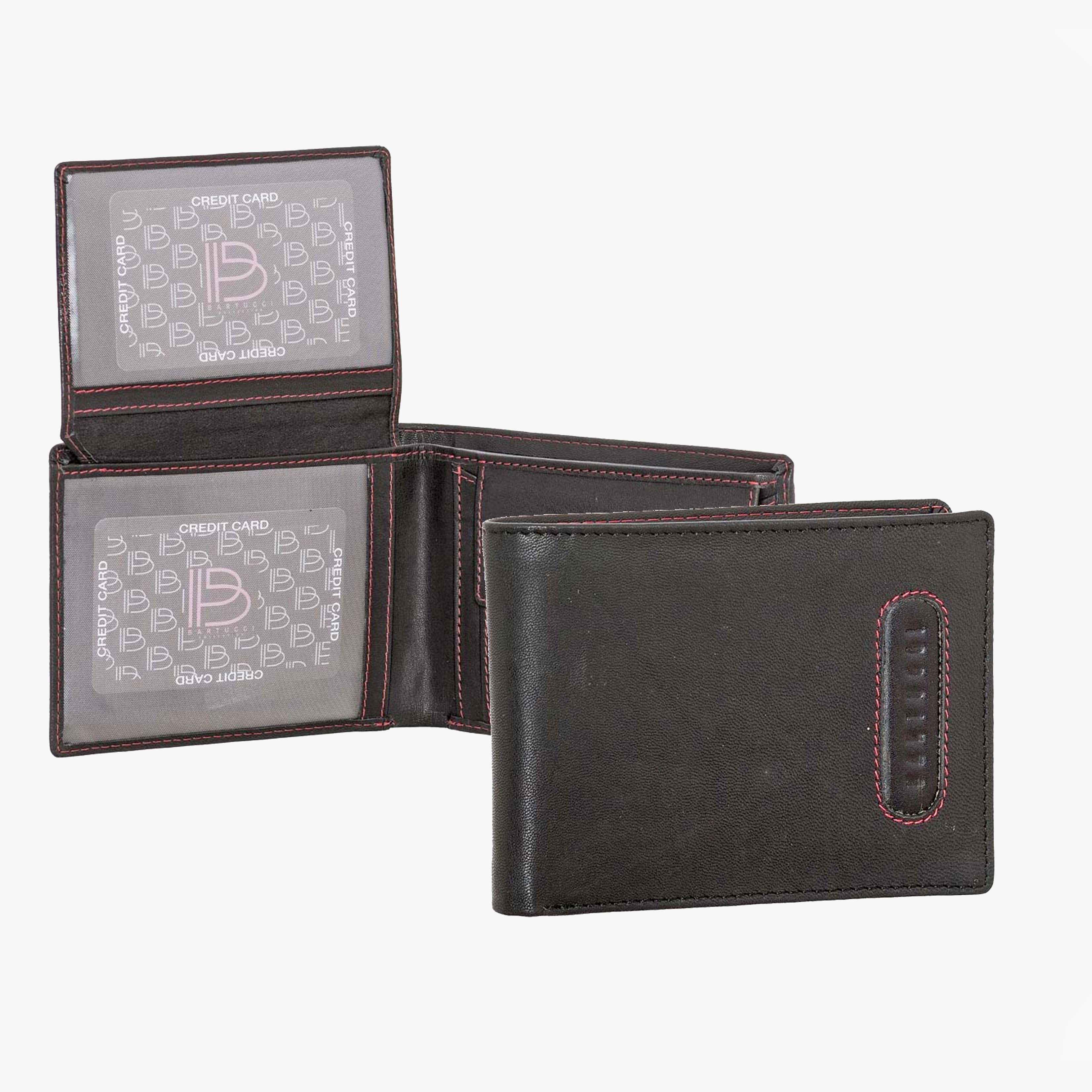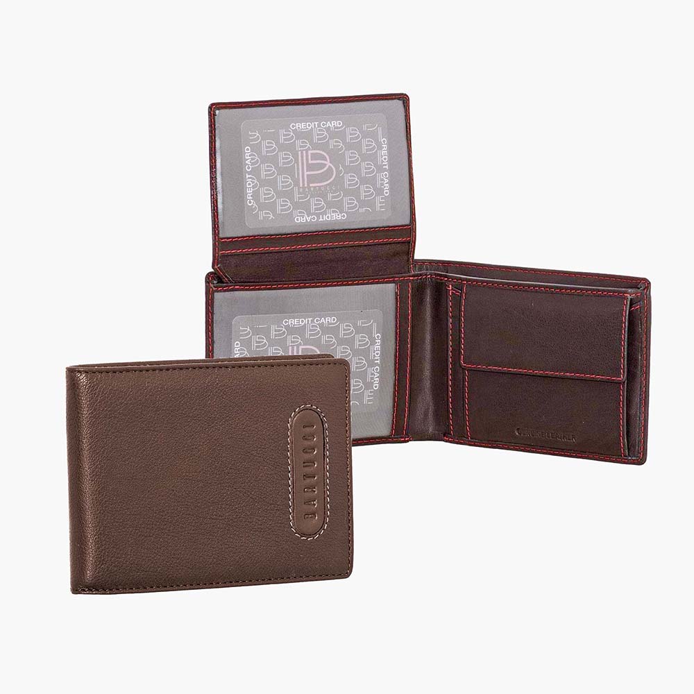 Δερμάτινο ανδρικό πορτοφόλι BARTUGGI με 8 θέσεις για κάρτες, 2 θέσεις για χαρτονομίσματα και 3 επιπλέον εσωτερικές θήκες για ταυτότητα, δίπλωμα ή φωτογραφία. Εξωτερικά στο πίσω μέρος διαθέτει τσέπη κερμάτων, που ασφαλίζει με φερμουάρ.