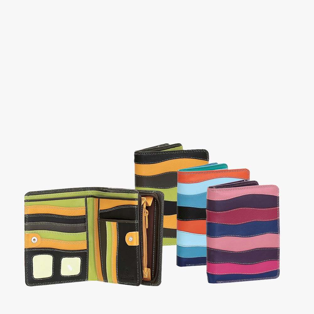 Γυναικείο πολύχρωμο δερμάτινο πορτοφόλι BARTUGGI σε έντονα χρώματα με λεπτομέρειες από τρυπητή δαντέλα.