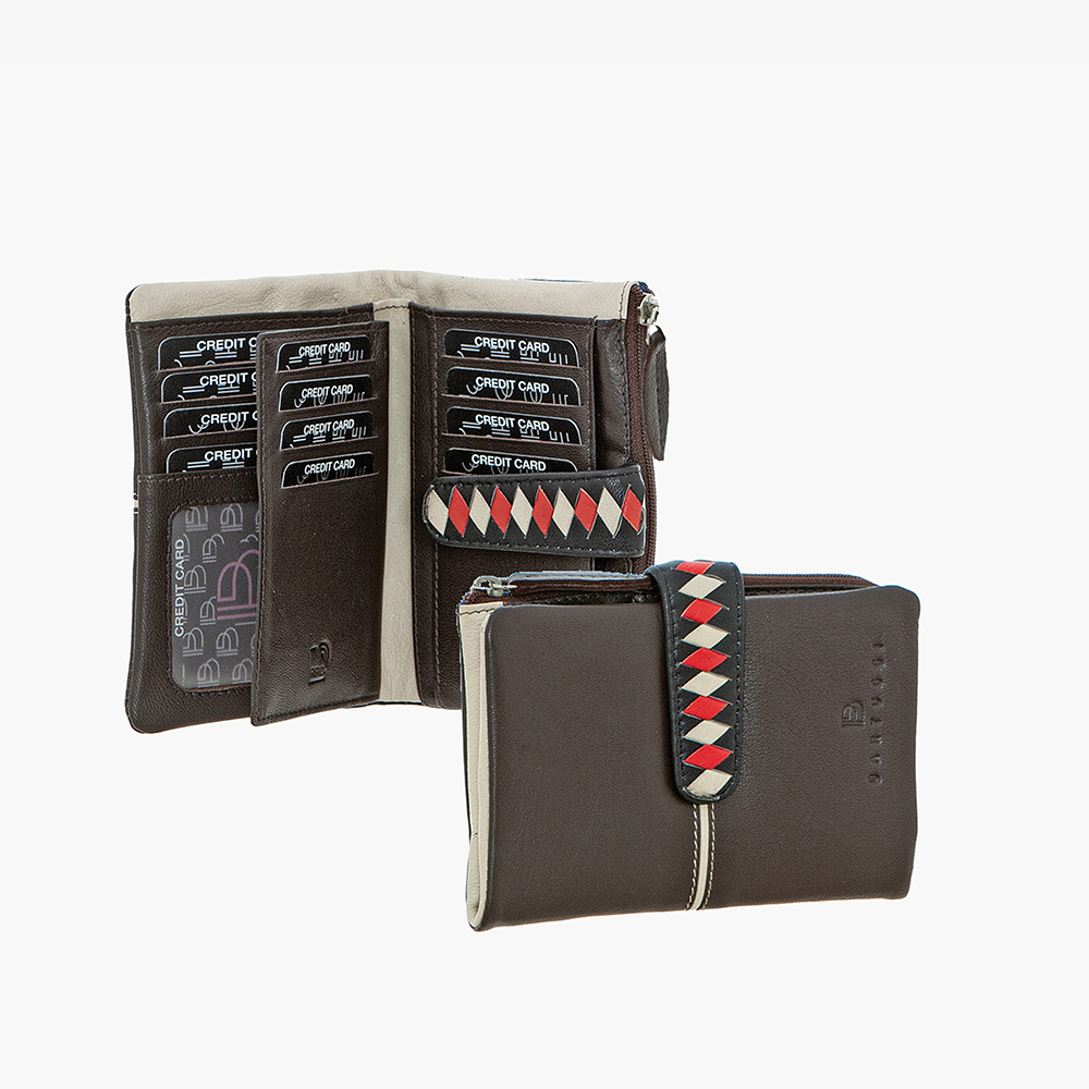 Αυτό το εκλεπτυσμένο γυναικείο πορτοφόλι της BARTUGGI δημιουργήθηκε με μεράκι για να προσφέρει στυλ και λειτουργικότητα. Η εντυπωσιακή πλεκτή γλώσσα προσδίδει ένα ιδιαίτερο στοιχείο κομψότητας. Με μια εξαιρετικά προσεγμένη κατασκευή από δέρμα υψηλής ποιότητας, αυτό το πορτοφόλι είναι σχεδιασμένο για να ανταποκρίνεται στις ανάγκες μιας σύγχρονης γυναίκας. Το πορτοφόλι περιλαμβάνει μια ευρύχωρη θέση για χαρτονομίσματα, εξωτερική τσέπη για κέρματα με φερμουάρ για να διατηρείτε τα ψιλά σας οργανωμένα, καθώς και 12 θέσεις για κάρτες και 6 επιπλέον θέσεις για ταυτότητες, δίπλωμα οδήγησης, φωτογραφίες, κλπ. Διαθέτει τέλος RFID αντικλεπτική προστασία. Είναι τοποθετημένο σε κουτάκι δώρου.