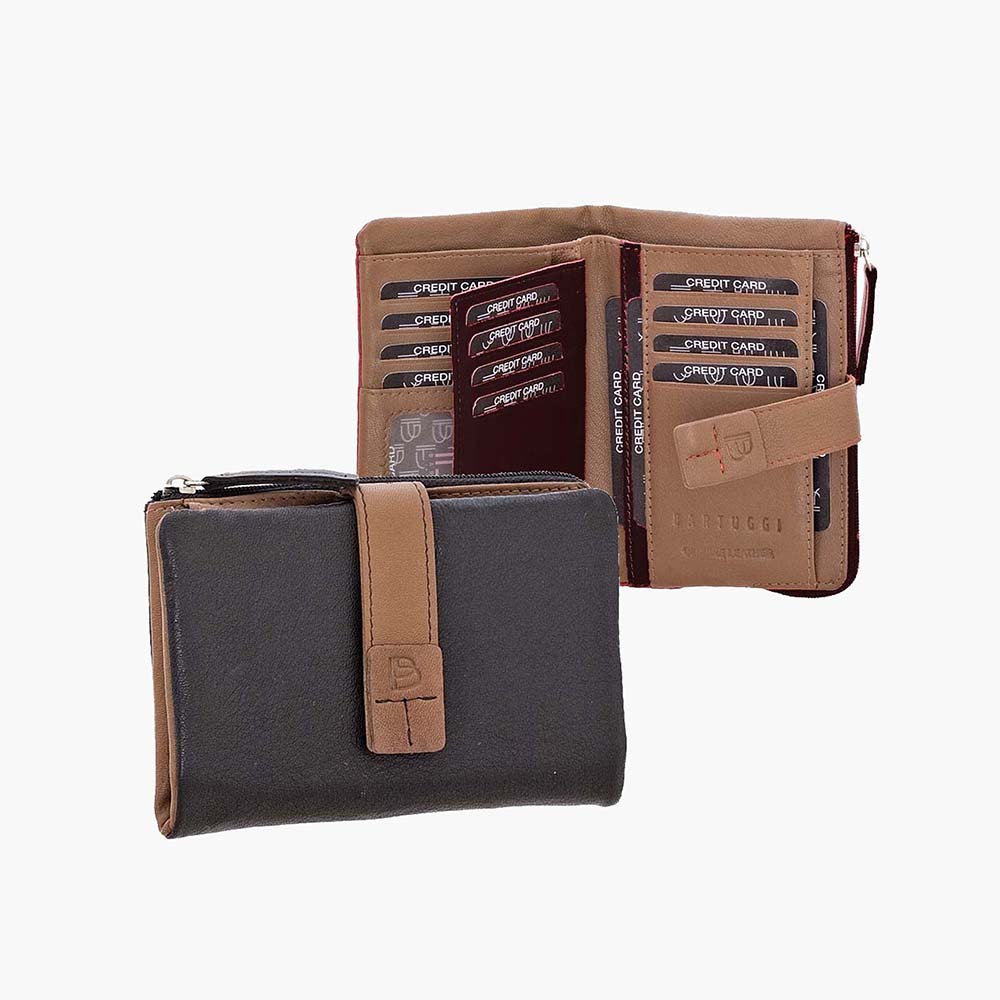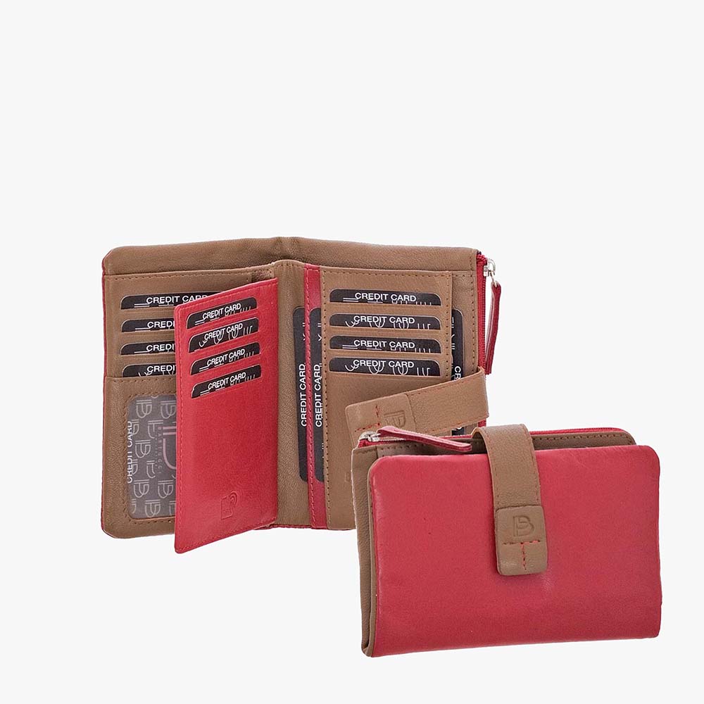 Γυναικείο δερμάτινο πορτοφόλι BARTUGGI σε έντονα χρώματα από μαλακό δέρμα, με εξωτερική θήκη με φερμουάρ για κέρματα.