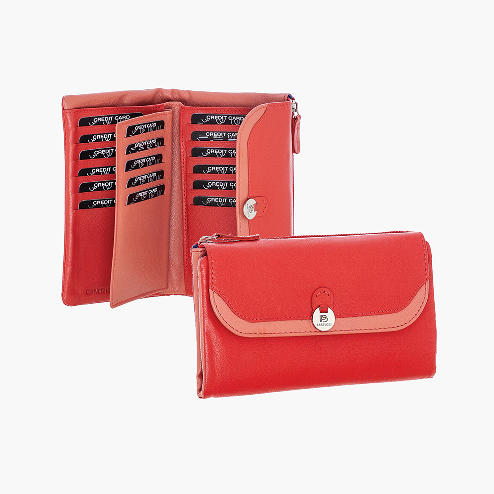 Το γυναικείο δερμάτινο πορτοφόλι Bartuggi συνδυάζει κομψότητα και λειτουργικότητα, με κλασικό σχεδιασμό και καπάκι που διακοσμείται με λεπτομέρειες σε διαφορετικό χρώμα. Η εσωτερική του διαρρύθμιση είναι ιδανική, διαθέτοντας 1 θέση για χαρτονομίσματα, 17 υποδοχές για κάρτες, 1 εξωτερική θήκη για κέρματα που κλείνει με φερμουάρ και 5 επιπλέον θέσεις για ταυτότητα, δίπλωμα, φωτογραφίες ή άλλα έγγραφα. Εξοπλισμένο με τεχνολογία RFID για προστασία από ανεπιθύμητες σαρώσεις, το πορτοφόλι αυτό συνοδεύεται από σκληρό κουτί δώρου, καθιστώντας το την τέλεια επιλογή για κάθε γυναίκα.