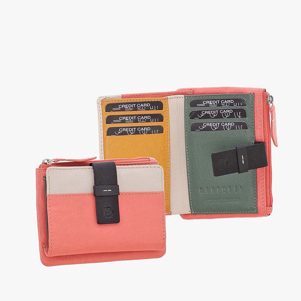 Γυναικείο δερμάτινο πορτοφόλι BARTUGGI σε έντονα χρώματα από μαλακό δέρμα, με εξωτερική θήκη με φερμουάρ για κέρματα.