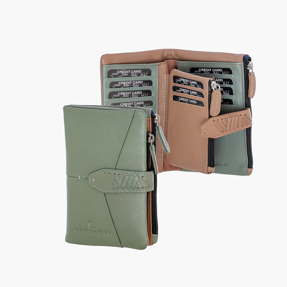 Ανακαλύψτε το γυναικείο δερμάτινο πορτοφόλι Bartuggi, σε διχρωμία ζεστών αποχρώσεων και μοναδικό, πρακτικό σχεδιασμό. Με ιδανική εσωτερική διαρρύθμιση, διαθέτει 1 θέση για χαρτονομίσματα, 11 υποδοχές για κάρτες, 1 εσωτερική θήκη για κέρματα με φερμουάρ, 1 επιπλέον εσωτερική θήκη για κάρτες ή κέρματα, καθώς και 3 θέσεις για ταυτότητα, δίπλωμα ή φωτογραφίες. Με ενσωματωμένη τεχνολογία προστασίας RFID, διασφαλίζει την ασφάλεια των προσωπικών σας δεδομένων. Το πορτοφόλι έρχεται σε πολυτελές σκληρό κουτάκι δώρου, ιδανικό για εσάς ή τα αγαπημένα σας πρόσωπα.