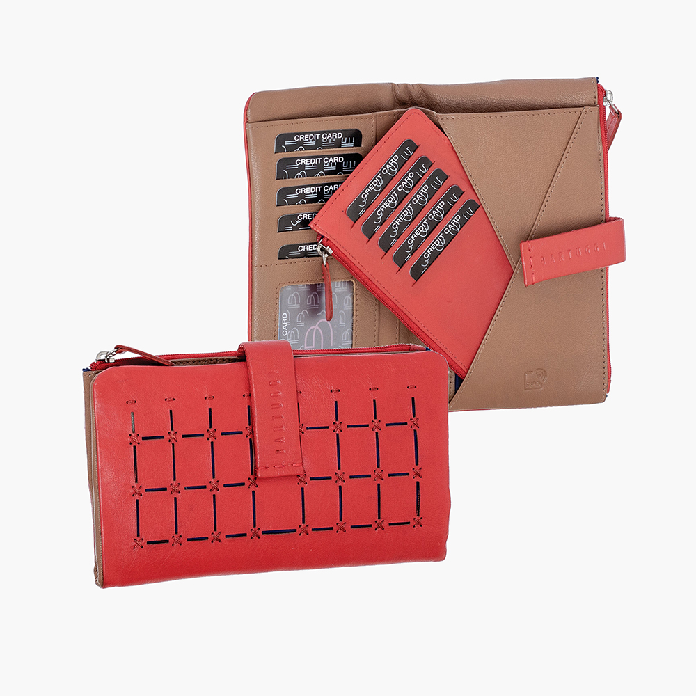 Ανακαλύψτε το γυναικείο δερμάτινο πορτοφόλι Bartuggi, με ένα πολύ ιδιαίτερο σχέδιο που περιλαμβάνει τετράγωνα μοτίβα για μια μοναδική αισθητική. Ο πρακτικός σχεδιασμός του περιλαμβάνει αποσπώμενο επιπλέον πορτοφολάκι που κλείνει με φερμουάρ, ιδανικό για να οργανώσετε τα μικροαντικείμενά σας. Η εσωτερική διαρρύθμιση είναι εξαιρετική με 1 θέση για χαρτονομίσματα, 10 υποδοχές για κάρτες και 1 θήκη για κέρματα εξωτερικά, που κλείνει με φερμουάρ για μεγαλύτερη ασφάλεια. Επιπλέον, διαθέτει 3 επιπλέον θέσεις για ταυτότητες, διπλώματα, φωτογραφίες και άλλα έγγραφα. Το πορτοφόλι Bartuggi προσφέρει προστασία RFDI για την ασφάλεια των δεδομένων σας και παραδίδεται σε σκληρό κουτί δώρου, κάνοντάς το την τέλεια επιλογή για κάθε γυναίκα.
