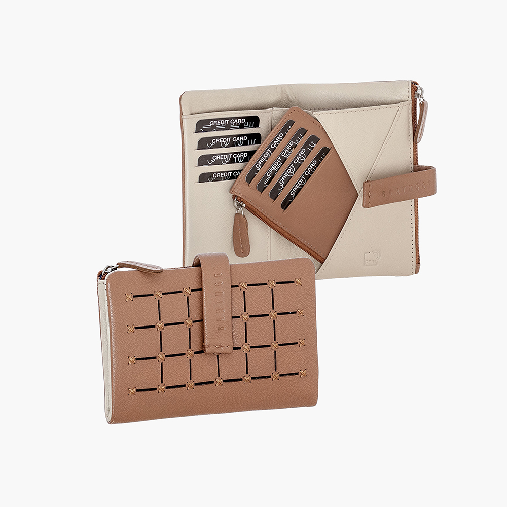 Ανακαλύψτε το γυναικείο δερμάτινο πορτοφόλι Bartuggi, με ένα εξαιρετικά ιδιαίτερο σχέδιο που συνδυάζει τετραγωνάκια και διχρωμίες για μια κομψή και μοναδική εμφάνιση. Ο πρακτικός σχεδιασμός του περιλαμβάνει αποσπώμενο μικρό πορτοφολάκι που κλείνει με φερμουάρ, εξασφαλίζοντας εύκολη οργάνωση. Η εσωτερική διαρρύθμιση προσφέρει 1 θέση για χαρτονομίσματα, 8 υποδοχές για κάρτες και 1 θήκη για κέρματα που κλείνει με φερμουάρ για μέγιστη ασφάλεια. Διαθέτει επίσης 2 επιπλέον θέσεις για ταυτότητες, διπλώματα, φωτογραφίες ή άλλα έγγραφα. Το πορτοφόλι Bartuggi παρέχει προστασία RFDI για να προστατεύει τα προσωπικά σας δεδομένα και συνοδεύεται από σκληρό κουτί δώρου, ιδανικό για κάθε περίσταση.