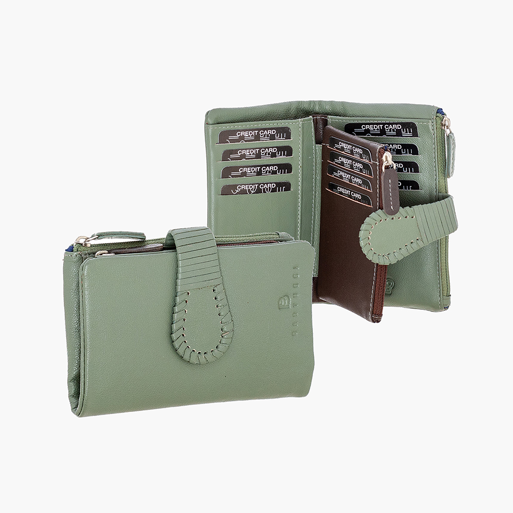 Κομψό και λειτουργικό, το γυναικείο δερμάτινο πορτοφόλι Bartuggi ξεχωρίζει για τις διχρωμίες του και τον μοντέρνο σχεδιασμό με γλωσσάκι διακοσμημένο με πλέξη. Προσφέρει ιδανική εσωτερική διαρρύθμιση με 1 θέση για χαρτονομίσματα, 12 υποδοχές για κάρτες, 1 εξωτερική θήκη για κέρματα που κλείνει με φερμουάρ, 1 επιπλέον θήκη για κέρματα ή κάρτες, και 3 θέσεις για ταυτότητα, δίπλωμα ή φωτογραφίες. Διαθέτει τεχνολογία RFID για προστασία από ανεπιθύμητες σαρώσεις και συνοδεύεται από σκληρό κουτάκι δώρου, αποτελώντας την ιδανική επιλογή για προσωπική χρήση ή για δώρο.