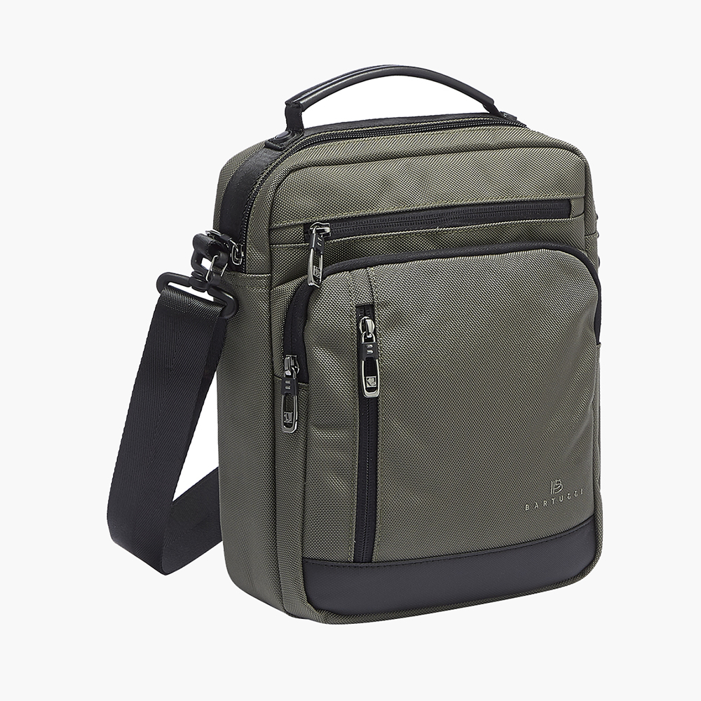 Αναδείξτε το στυλ σας με το ανδρικό τσαντάκι Bartuggi body cross, κατασκευασμένο από χακί ύφασμα υψηλής ποιότητας με κομψές λεπτομέρειες από δερματίνη. Ο κλασικός και πρακτικός σχεδιασμός του, εμπλουτισμένος με μοναδικές λεπτομέρειες, το κάνει ιδανική επιλογή για κάθε περίσταση. Εσωτερικά, διαθέτει μία ευρύχωρη τσέπη που κλείνει με φερμουάρ και δύο μικρότερα τσεπάκια για μικροαντικείμενα, καθώς και δύο θήκες για στυλό και ειδική υποδοχή για μπρελόκ. Εξωτερικά, προσφέρει τρεις μπροστινές τσέπες που κλείνουν με φερμουάρ για γρήγορη πρόσβαση στα απαραίτητα, καθώς και μία ακόμη τσέπη στο πίσω μέρος με φερμουάρ. Η λαβή στο επάνω μέρος και ο προσαρμοζόμενος ιμάντας ώμου εξασφαλίζουν άνετη και ευέλικτη μεταφορά.
