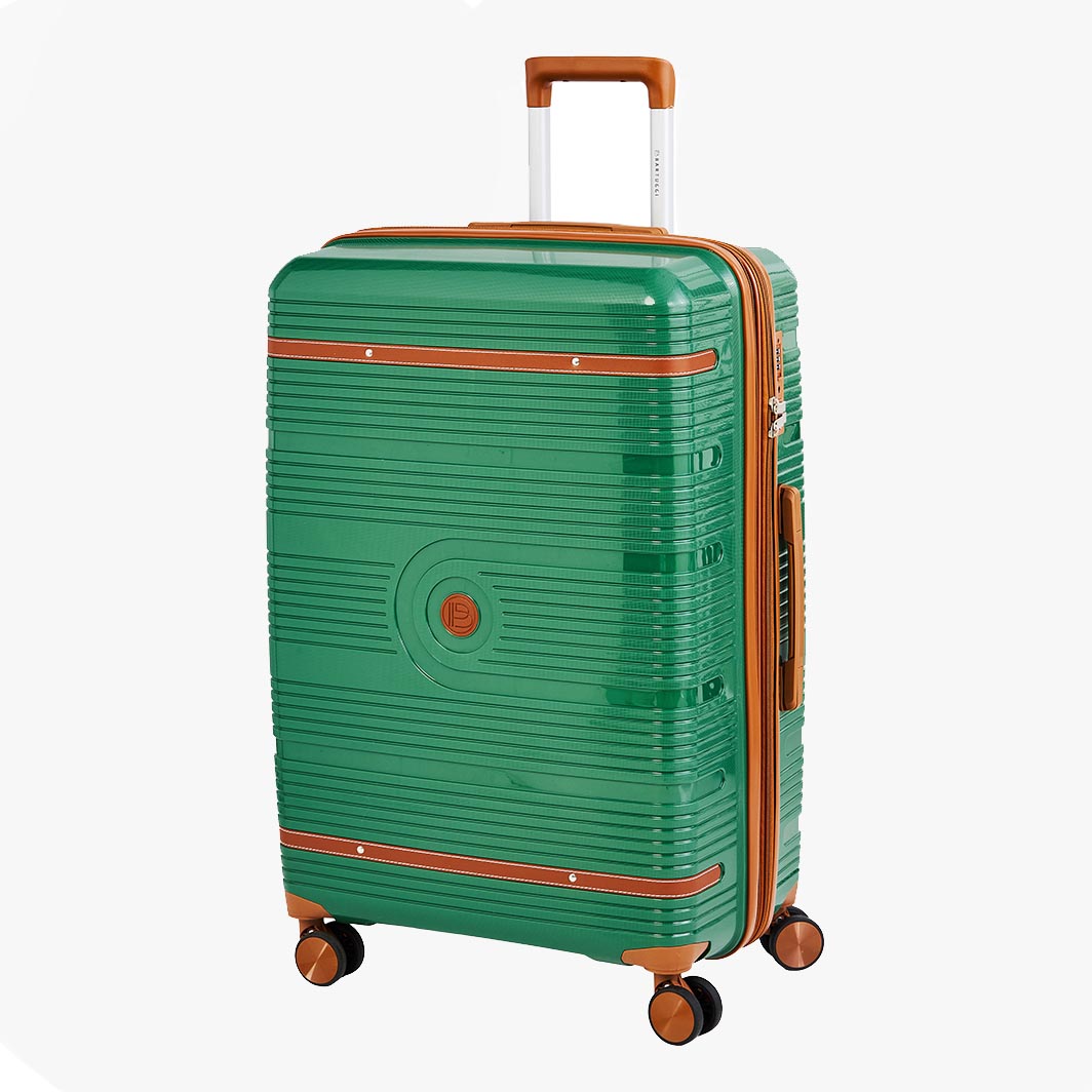 Ανακαλύψτε την απόλυτη λύση για μεγάλα ταξίδια με μια extra ευρύχωρη βαλίτσα ύψους 80 εκ., σχεδιασμένη για να καλύπτει κάθε ανάγκη μεταφοράς. Κατασκευασμένη από ανθεκτικό πολυπροπυλένιο (PP), προσφέρει υψηλή προστασία από χτυπήματα και φθορές, διατηρώντας παράλληλα ελαφριά κατασκευή για άνετη χρήση. Το εσωτερικό της διαθέτει δύο ξεχωριστούς χώρους με διαχωριστικό για σωστή οργάνωση, ενώ στη μία πλευρά υπάρχουν δύο τσέπες με φερμουάρ (η μία διχτυωτή) και στην άλλη ελαστικοί ιμάντες που κλείνουν χιαστί για ασφαλή συγκράτηση των αντικειμένων. Διαθέτει επάνω και πλαϊνή λαβή για εύκολη μεταφορά, τέσσερις διπλές ρόδες για σταθερή και ομαλή κύλιση, καθώς και προστατευτικά τακουνάκια για μεγαλύτερη αντοχή στη χρήση. Η ενσωματωμένη κλειδαριά TSA τριπλού συνδυασμού εξασφαλίζει ασφάλεια, ενώ το επεκτεινόμενο φερμουάρ αυξάνει τη χωρητικότητα έως και 4 εκ. Οι χρωματικά συνδυασμένες λεπτομέρειες ολοκληρώνουν ένα κομψό και σύγχρονο αποτέλεσμα, ιδανικό για απαιτητικούς ταξιδιώτες.
