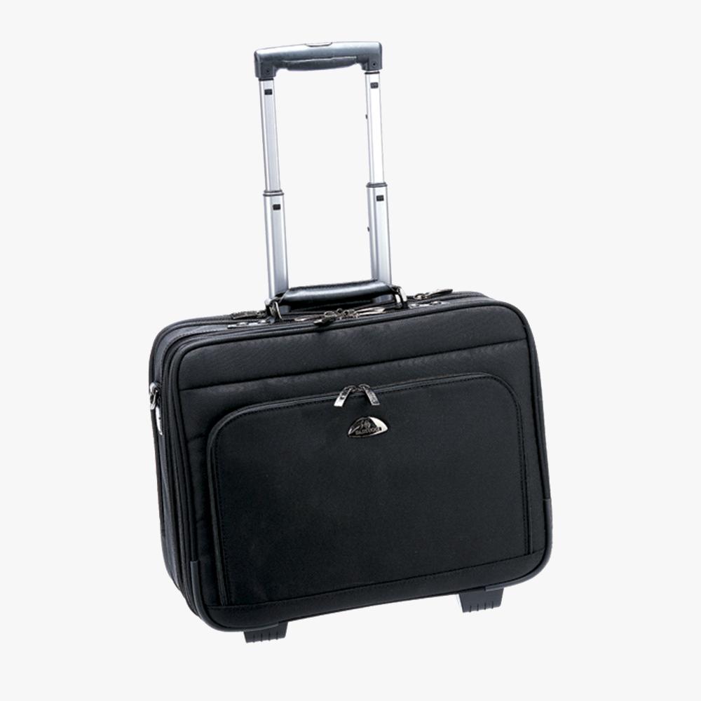 Τροχήλατο βαλιτσάκι BARTUGGI από αδιάβροχο ύφασμα για επαγγελματικά ταξίδια με ειδική θήκη για laptop και έγγραφα, θήκη για ρούχα, μπροστινή τσέπη που περιλαμβάνει θέση για κινητό, στυλό, κάρτες, κλπ. Επιπλέον διαθέτει θέσεις για τα αξεσουάρ του laptop, εξωτερική τσέπη με φερμουάρ και ιμάντα ώμου. Διαστάσεις: 41 x 33 x 17εκ.
