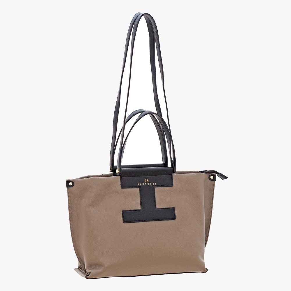 Διαχρονική τσάντα BARTUGGI με μεγάλη χωρητικότητα, κατασκευασμένη από μαλακό υλικό με διχρωμία και επιπλέον ιμάντα ώμου, ώστε να μπορεί να φορεθεί και χιαστί, ιδανική για κάθε ημέρα.