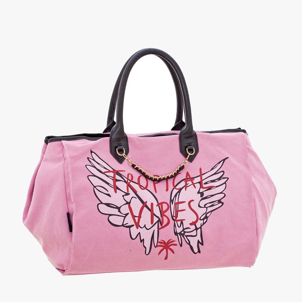Εντυπωσιακή τσάντα με πρωτότυπο υλικό και λεπτομέρειες από δερματίνη και αλυσίδα που μπορεί να χρησιμοποιηθεί και σαν τσάντα θαλάσσης. Ξεχωρίστε από το πλήθος!