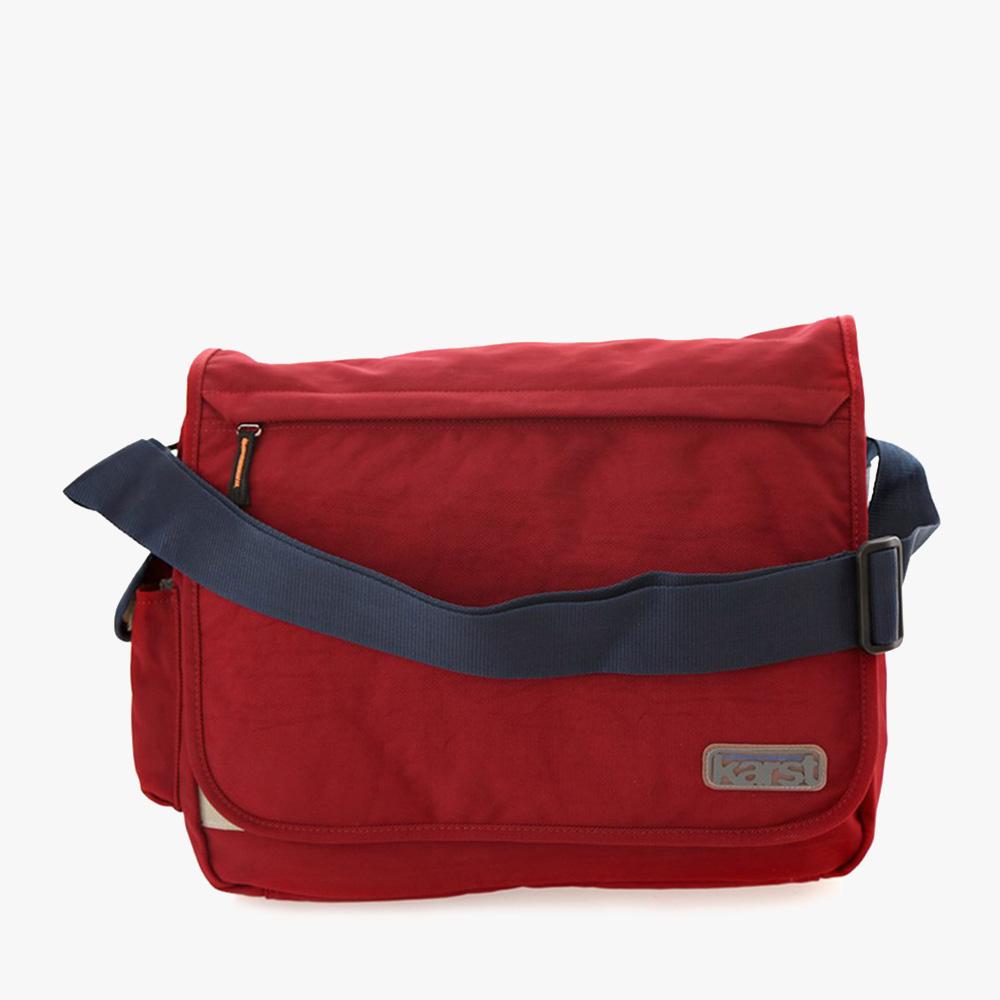 Τσάντα ταχυδρομική KARST από αδιάβροχο polyester μεγάλης ανθεκτικότητας, με μια τσέπη στο μπροστινό μέρος και μια πίσω που κλείνουν με φερμουάρ και μια θήκη κινητού στο πλάι.