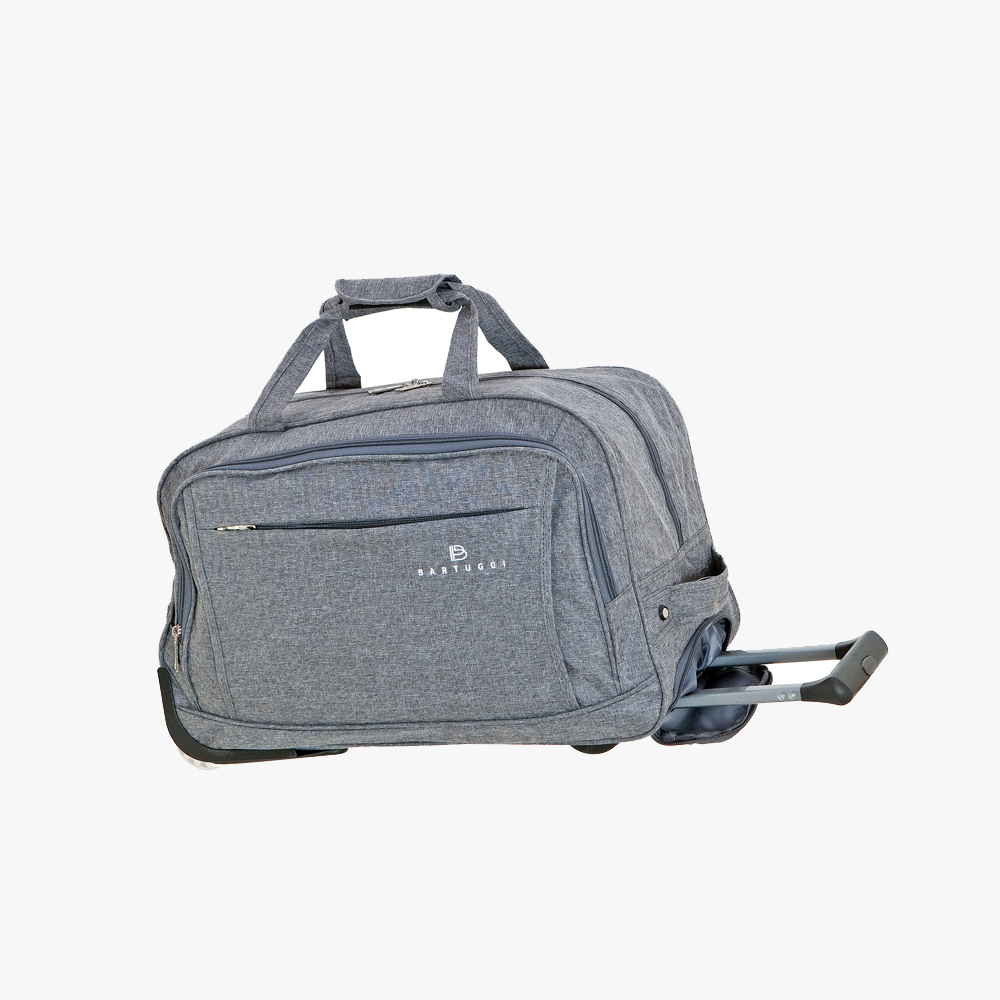 BARTUGGI's carry-on duffle bag features a hidden expandable handle and wheels. This duffle offers relaxed styling for more casual travel, plus 2 exterior pockets (a bigger and a smaller one) for organizing smaller items. Features plastic protection on the side and on the bottom of the bag and extra carry on handle on the side. This durable bag is easy to roll and can be comfortably hand-carried as well.